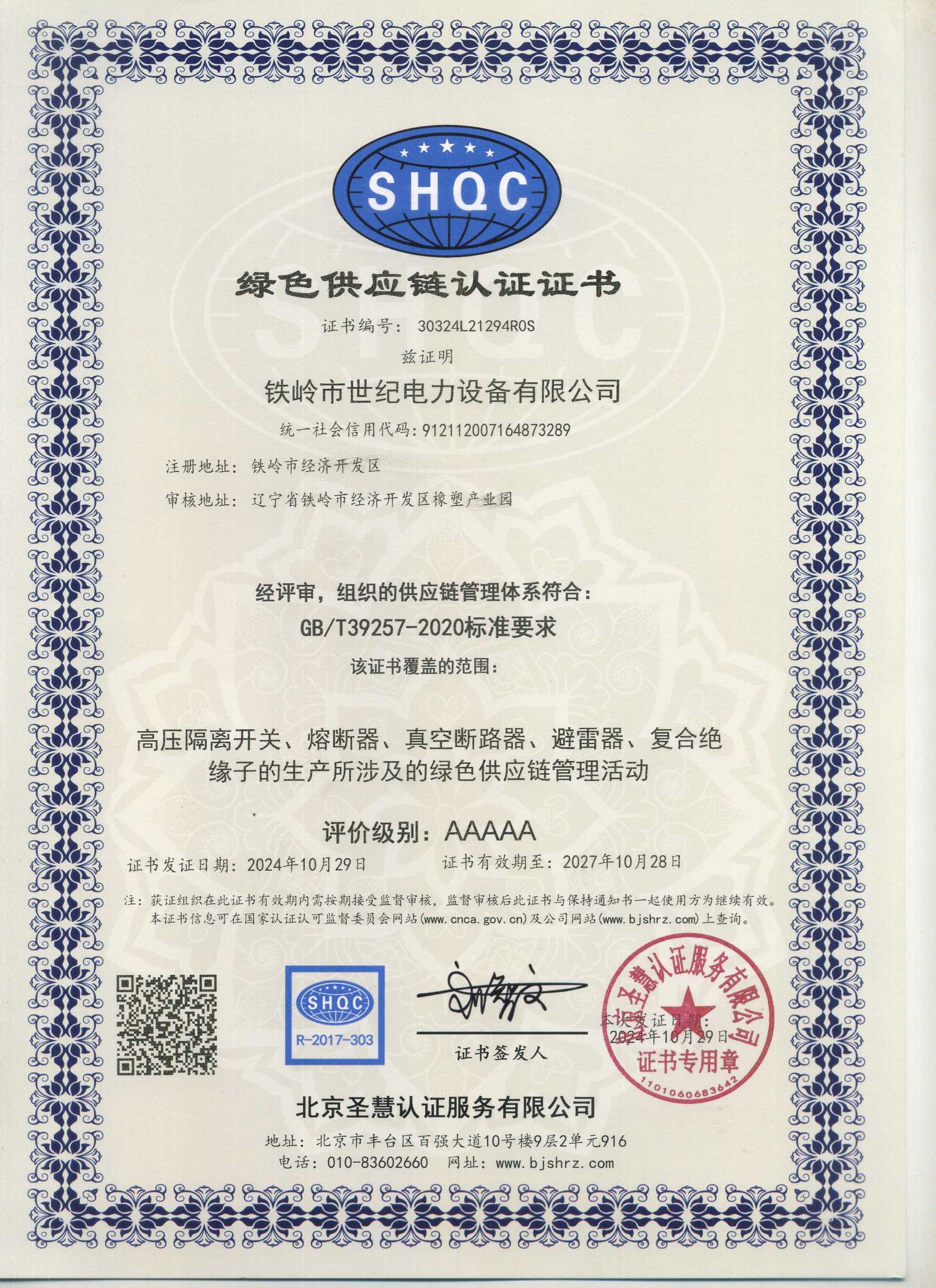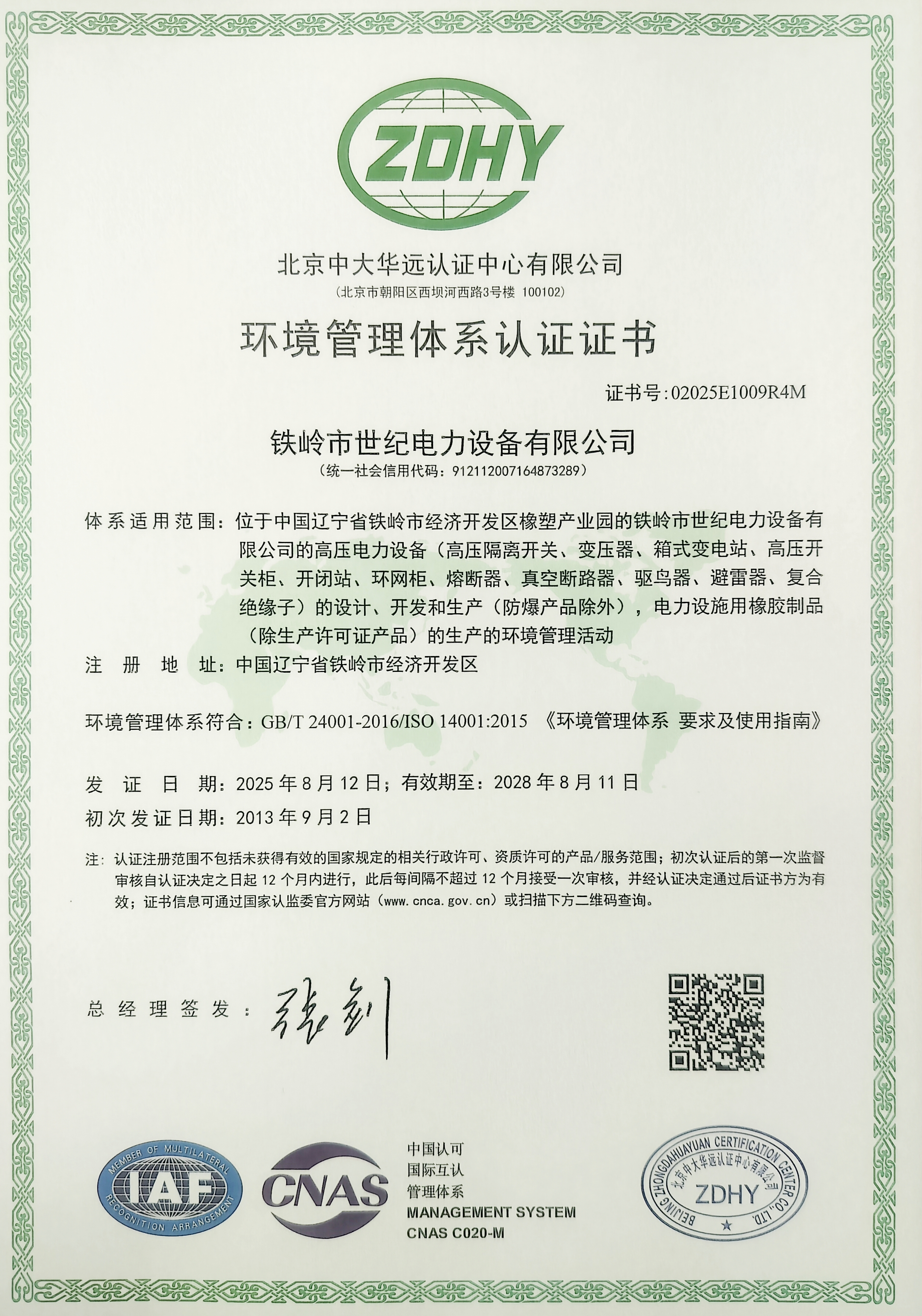 鐵嶺市世紀電力設備有限公司是集科研開發(fā)、生產制造、用戶服務于一體的國家高新技術企業(yè),始建于1999年,位于鐵嶺經濟開發(fā)區(qū),占地面積5萬余平方米,建筑面積2萬余平方米。主要從事國家電網配套戶外高低壓隔離開關、電力電纜、變壓器成套裝置、高低壓開關柜、箱式變電站、絕緣子等產品的研發(fā)、生產和銷售。公司現(xiàn)有國家發(fā)明專利6項、實用新型專利9項,公司通過了ISO9001國際質量管理體系認證、ISO14001環(huán)境管理體系認證和ISO 45001職業(yè)健康安全體系認證。